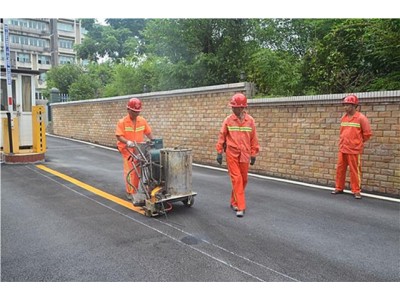 在涂敷标线前,先对标线涂敷处喷涂底油,充分保证标线与路面的粘合力。在涂底胶的同时,将涂料加入热熔,使之充分熔化,以备涂敷。涂料的加温温度必须超过180度 。