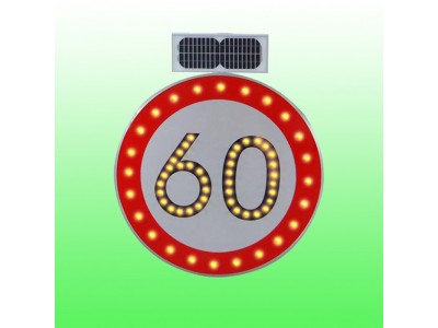 太阳能限速标志牌是以多晶硅太阳能板、蓄电池组件为能源,它利用太阳能板将白天的阳光转换成电能贮存于蓄电池中,当夜幕降临、视线昏暗或雨雾天气等视线不佳情况下,限速标志牌上的发光二极管自动启动闪烁,通过LED发出亮光来勾画图案轮廓,传达交通信息。