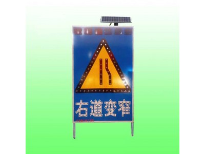 太阳能右道变窄标志牌由LED灯、灯箱、太阳能板、反光膜等材料制作而成。太阳能右道变窄标志牌又叫做交通标牌,太阳能标志牌,太阳能施工诱导牌,交通诱导牌,led发光警示牌。交通标牌。骧虎交通led右道封闭发光标志牌使用寿命长,节能环保。