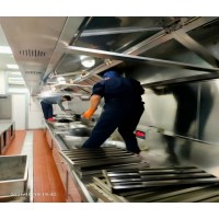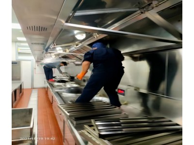 烟道清洗内容包括烟罩表面、烟罩内的灯罩、排风口、排烟口以及电机、灶台表面。烟道清洗的重点是排烟口与烟罩相连处并和烟罩同步平行的排烟道。重点对平行烟道内部进行彻底清洁。采用的主要方法是专业人员进入烟道内部进行清洁。对于排烟口窄小,人工无法进入烟道或由于烟道走身狭窄、人工触及不到无法进行清洁,但又存在着重大隐患的,本公司可利用特殊设备进行清洁,不留死角,并可拍摄清洁前后的对比照片,打消客户的疑虑和担心,消除一切潜在的火灾隐患。风机、风柜与烟道连接的方法一般有两种情况:一种是用帆布相连的软连接,而另一种是直接与烟道相连的硬连接。可提供更换风机、风柜连接帆布的服务。如果是烟道硬连接,我们将与风机、风柜相连的烟道进行彻底清洁