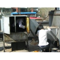 对于大于40公分见方的平行烟道可以人工钻进去进行清理,此法劳动强度较大,需要注意加强通风,配备低压36伏照明电源。